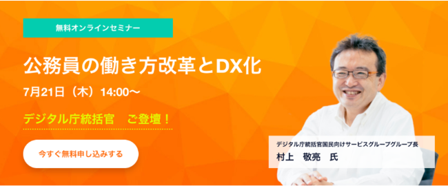 本セミナーでは、デジタル庁統括官の村上敬亮氏を基調講演でお招きし、「公共団体における働き方改革とDX化の取り組みについて」も詳しく解説いただきます。