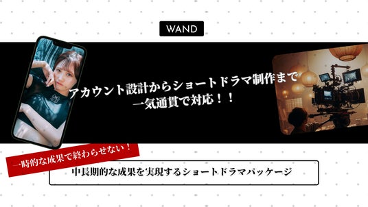 「TikTok売れ」などSNSマーケティングに特化した株式会社WAND(本社:東京都渋谷区、代表取締役社長:黒崎悠一、以下「WAND」、読み:ウォンド、https://thewand.jp/)は、アカウント設計からTikTok運用体制の構築、ショートドラマ制作までを一気通貫でご提供する、オールインワンパッケージをリリースすることをお知らせいたします。また、5社限定でアカウント設計費用を無償でご提供する、特別プランもリリース中です。