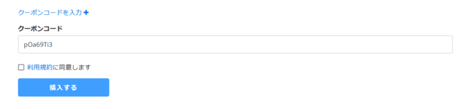 BASICプラン年間契約の申込ページの「クーポンコード」欄にコードを入力し、「購入する」で申込完了します。