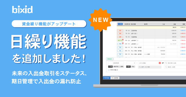 日単位の資金管理が可能となる「日繰り機能」を追加いたしました。
