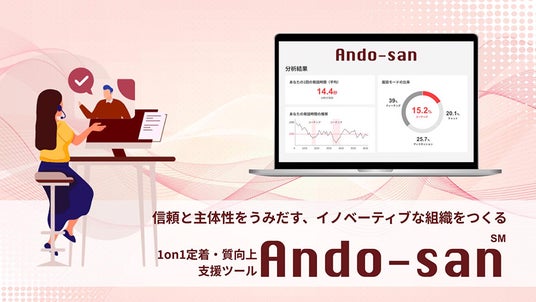 Ando-san(あんどうさん)は、信頼と主体性を生みだす1on1サポートサービスです。科学的知見とデータサイエンスの技術から、1on1の定着・質の向上を促し、アイデアあふれるイノベーティブな組織の実現を支援します。