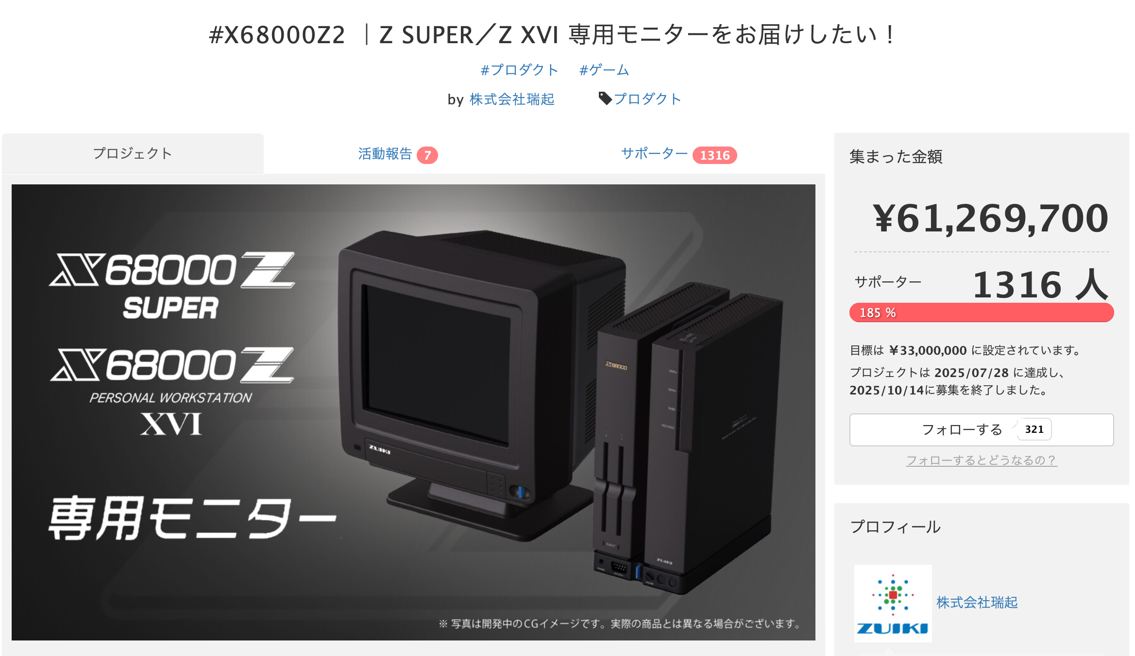 プロジェクトを詳しく見る第4位【61,269,700円達成】#X68000Z2 |Z SUPER/Z XVI 専用モニターをお届けしたい!