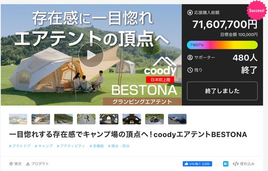 一目惚れする存在感でキャンプ場の頂点へ!coodyエアテントBESTONA