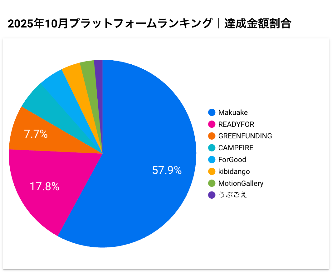 クラウドファンディングに特化したコンサルティング事業を展開する株式会社craco(本社:東京都世田谷区、代表取締役:溝橋正輝)は、国内主要クラウドファンディングプラットフォーム(※)のデータを独自に集計し、2025年10月度の市場動向調査レポートを発表いたします。