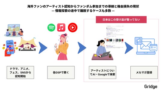 グリッジ株式会社は、日本の音楽でアジアと世界をブリッジするマーケティングに特化したエンターテインメントカンパニーです。このたび音楽業界に特化したダイレクトマーケティング戦略「D2F × CRM」のノウハウ・解説を初公開。実践を通じて得た知見をまとめた解説記事を無料で公開し、これから海外展開・ファンベース拡大を目指す企業・チームの支援を加速させます。
