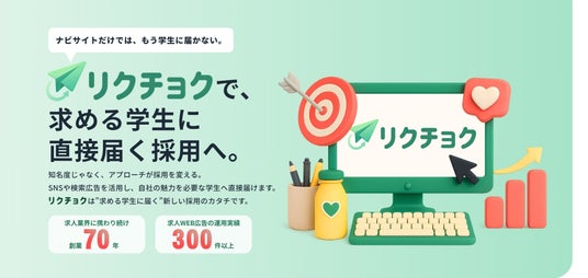 こうした課題を解決するため、当社はWEB広告・SNS広告を活用した新卒採用支援サービス「リクチョク」を提供開始しました。