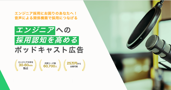 株式会社PitPa(本社:東京都渋谷区、代表取締役:石部達也、以下PitPa)は、エンジニアにリーチ可能な音声広告「エンジニア採用ポッドキャスト広告プラン」の対象となる番組数を150%増やし、さらに幅広くエンジニアにリーチできるメニューへとリニューアルいたしました。本日より広告枠の販売を開始します。