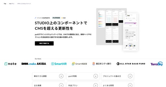 CMSを超えた更新性、gazの『デザインシステムパッケージ』サイトTOP