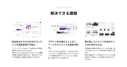 デザインシステムを作成し、STUDIO上のコンポーネントで実装するのでドラッグ&ドロップの簡単な操作でページコンテンツを複製、追加することが可能です。