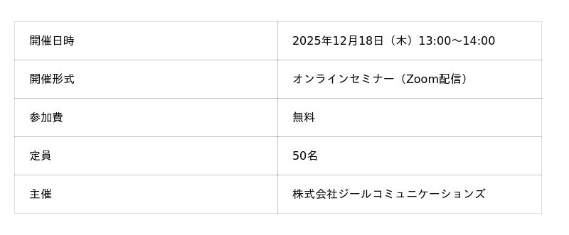 株式会社ジールコミュニケーションズ2025年12月18日(木)13:00~14:00 Zoomオンラインセミナー