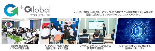 アドソル日進株式会社(本社:東京都港区、代表取締役社長 篠崎俊明、以下:アドソル日進)は、長年培ったオフショア開発実績とAI・アジャイル開発・データマネジメントなどの最新技術・ナレッジを統合したグローバルITサービス「+Global(プラスグローバル)」の提供を開始します。