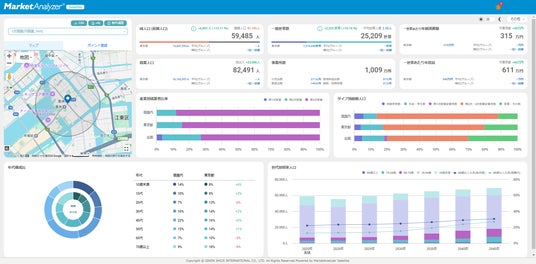 Webブラウザで、いつでもどこでも見たいエリアの商圏データ(人口や世帯年収、消費傾向等のデータ)をグラフ等で閲覧・分析・共有できるMarketAnalyzer(R) Satellite。