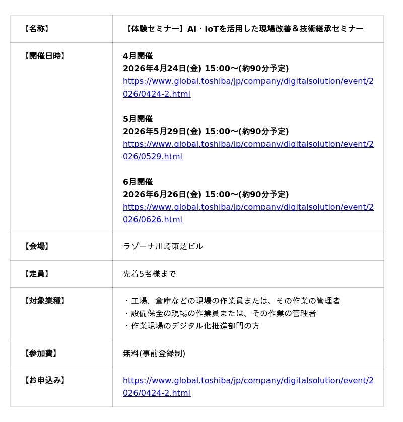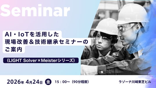 株式会社LIGHTz(本社:茨城県つくば市、代表取締役社長CEO:乙部 信吾、以下LIGHTz)は、株式会社東芝(本社:神奈川県 川崎市、社長執行役員 CEO:島田太郎)との協創の第一弾として、「AI・IoTを活用した現場改善&技術伝承セミナー」を共同開催いたします。