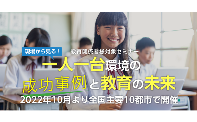 2022年、GIGAスクール構想によりスタートした一人一台環境は2年目を迎えました。1年目の「慣れる・使ってみる」フェーズから「活用」フェーズへと変化し、1年目にはなかった新たな課題が見られるようになりました。そんな新たな課題に立ち向かう現場の先生方の興味・関心が高い「全国活用事例・成功談」と、活用フェーズにおすすめな 「Education Plus エディション」の価値や効果をお伝えするため、無料セミナーを全国10か所で開催いたします。