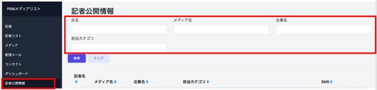 ▲PRMメディアリストの「記者公開情報」では各種情報から記者の検索が可能