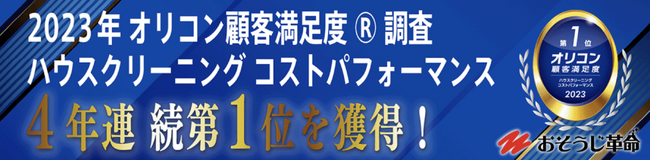 株式会社KIREI produce(本社:東京都港区 代表:福井智明)が運営するハウスクリーニングのおそうじ革命は、「2023年 オリコン顧客満足度(R)調査 ハウスクリーニング コストパフォーマンス 4年連続 第1位」を獲得しました。