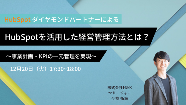 企業のマーケティング、DX化などの支援を行う株式会社H&K(本社:茨城県土浦市、支店:東京都新宿区、代表取締役CEO:安藤弘樹)が、2022年12月20日(火)17:30~18:00に、「HubSpotを活用した経営管理方法」について語るウェビナーを開催することとなりましたので、ご案内いたします。