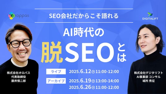 SEO会社だからこそ語れる「AI時代の脱SEO」をテーマとし、株式会社デジタリフトと共催ウェビナーを開催いたします。