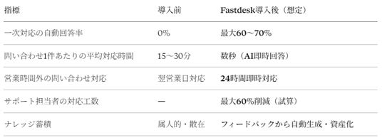 当社においても、自社サービスの顧客サポートでこの課題を経験してきました。社内でFastdeskを活用したところ、担当者が対応に追われていた定型的な問い合わせをAIが一次対応できるようになり、チームが本来注力すべき顧客への提案・改善業務に時間を使えるようになりました。この社内での手応えをもとに、同様の課題を抱えるSaaS企業へ広く提供することを決定しました。