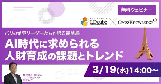 研修のスタイルにとらわれない企業向け人材育成サービスを提供する株式会社LDcube(本社:東京都千代田区、代表取締役社長:新井澄人、以下「当社」)は、当社が日本国内のパートナーとして展開するフランスのCrossKnowledge社とコラボレーションしてウェビナーを開催することになりましたので、お知らせします。