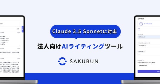 NOVEL株式会社(本社:東京都中央区、代表:岡田徹)は、このたび、法人向けのAIライティングツール「SAKUBUN」に、米Anthoropic社が2024年6月21日に発表した新たなAIモデル
