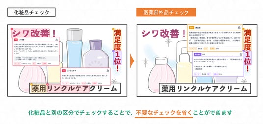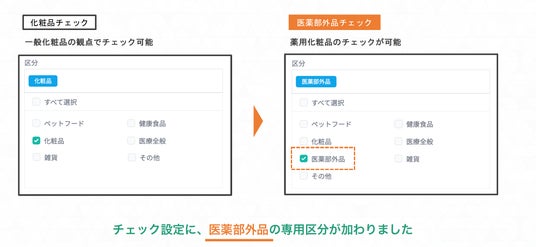 化粧品と別の区分でチェックすることで不要なチェックを省くことが可能となりました。