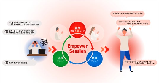 「Empower Session」は、マネジメント課題とその解決策を整理するEVeMが提唱する1on1フォーマットです。