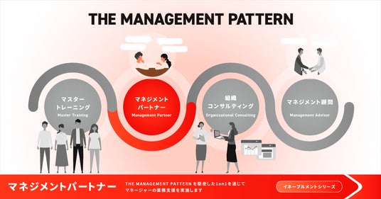 EVeM独自のマネジメントナレッジである「THE MANAGEMENT PATTERN」を使いこなせるようになることで、組織やマネージャーの”マネジメント能力”が向上し続ける「マネージャーイネーブルメントサービス」を提供しています。