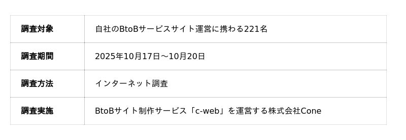 株式会社Cone(本社:大阪府大阪市、代表取締役:佐藤 立樹)は、自社のBtoBサービスサイト運営に携わる担当者を対象に、「サイトの更新頻度と成果の関係性」に関する調査を実施しました。