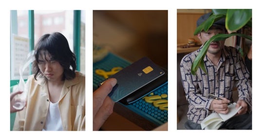 今回のショートドラマ制作のお話をいただく少し前、たまたまカフェで隣に座った男性に、自分がそのとき飲んでいたゆず茶の美味しさを説明する機会がありました。その結果彼とは仲良くなり、ゆず茶代を奢ってもらうという経験がありました。その経験をもとに、"暮らしをクリエイティブに↗"というポケットカードさんが掲げているコンセプトを拝見した際、小説家がアイディアをカフェで他人からクレジットカードで買う話が思い浮かび、ストーリーを考案しました。