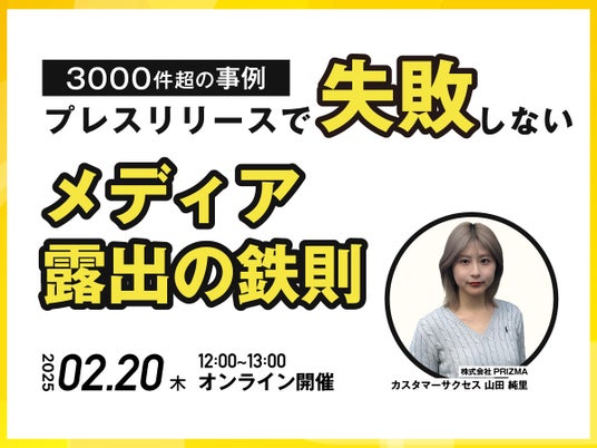 https://www.prizma-link.com/)は、2025年2月20日(木)12:00~13:00に『3000件超の事例!失敗しないプレス配信”メディア露出”の鉄則』と題するオンラインセミナーを開催いたします。