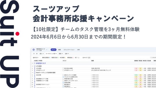 この度、株式会社スーツ(所在地:東京都千代田区、代表取締役社長CEO:小松 裕介)は、チームでかんたん、毎日続けられるプロジェクト・タスク管理ツールの経営支援クラウド「Suit UP」(スーツアップ)において、会計事務所応援キャンペーンを実施いたします。