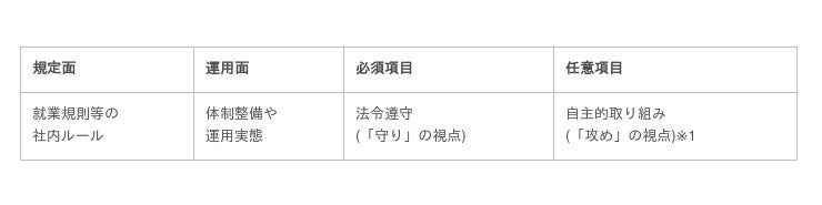 「規定面」「運用面」「必須項目」「任意項目」の4つの観点で総点検します。