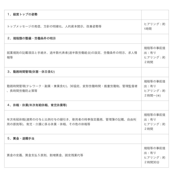 全ての点検項目について根拠が明確であるため、社内の報告にも活用できるほか、新規上場(IPO)を目指す企業の労務デューデリジェンス(※2)にも有効です。特にIPOでは、IPO準備会社を取り巻く関係者が多いため、根拠が明確であれば点検結果を関係者に共有する場面でも説明しやすくなります。
