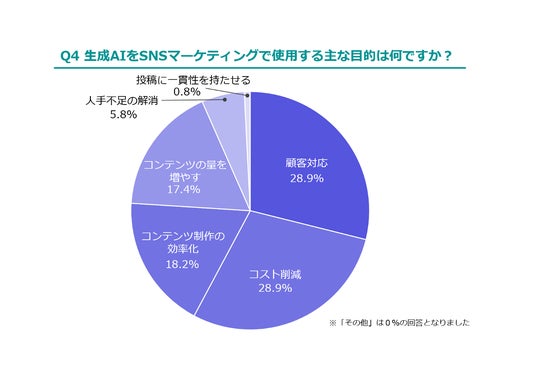 SNSマーケティングにおいてコンテンツの充実は重要であるため、人手の確保よりも、コンテンツの充実に直結する役割を生成AIに見出していると言えます。
