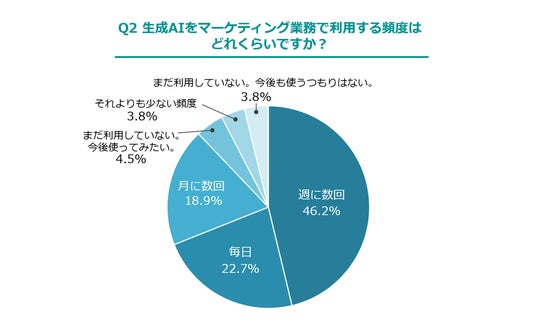 2.約7割が週に数回~毎日、生成AIをマーケティング業務に利用