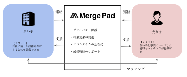 MergePadは、Web3に特化したM&Aプラットフォームです。新規にWeb3・ブロックチェーン技術を既存の事業に活用したい事業者と、優れた技術やプロジェクトを有する事業者が社会に与える影響を最大限引き出すことを目的としています。買収・売却を検討する事業者の匿名性に最大限配慮し、企業評価、候補企業の選出・選定、ご提案、交渉・成約まで幅広くサポート致します。今後、株式による買収・売却だけでなく、トークンに転換予定の社債等の譲渡や二次流通に関するサポートも提供する予定です。