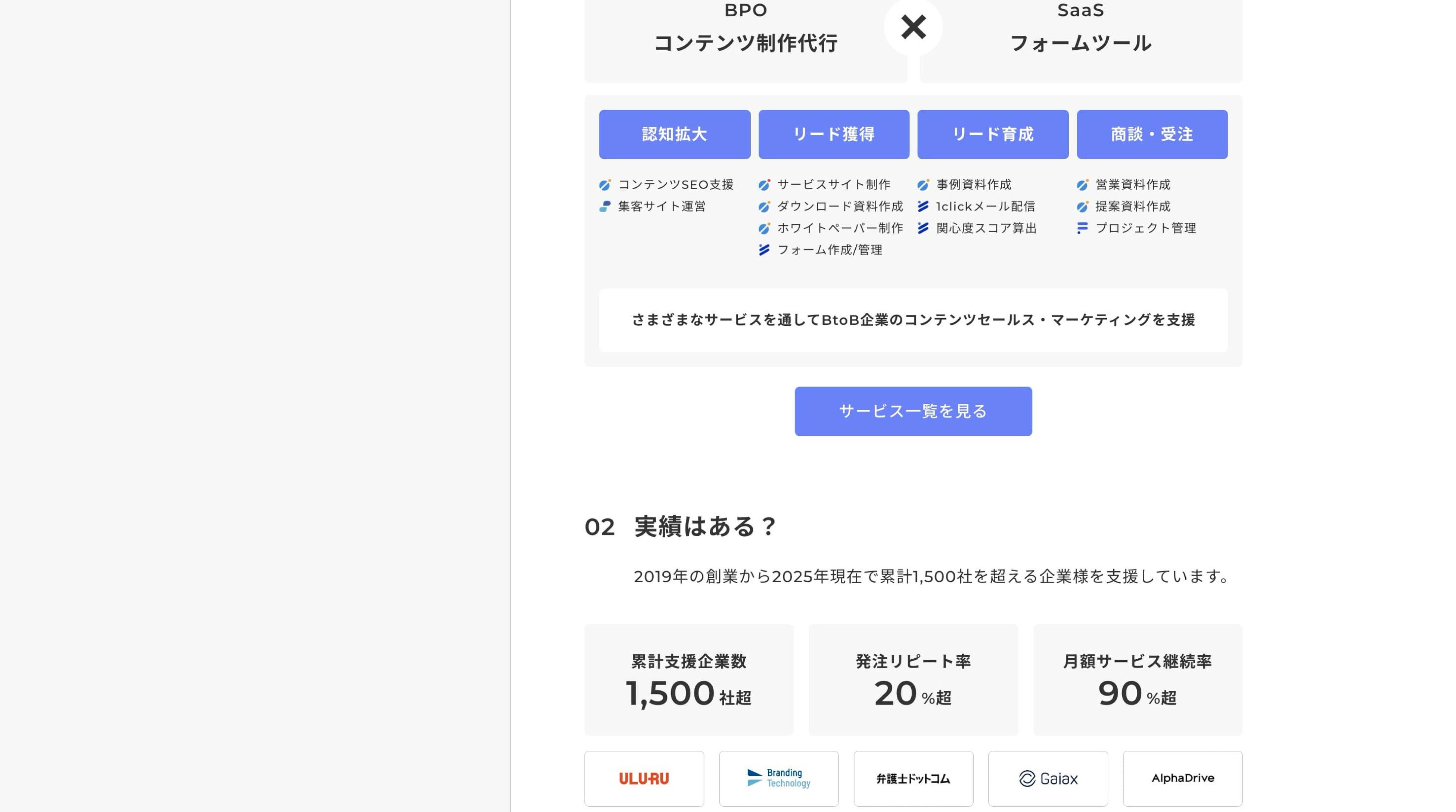 大手企業は知名度高く、なにをやっているかも理解がある状態でサイト訪問が起こります。そのため、知りたい情報へアクセスしやすくなっています。