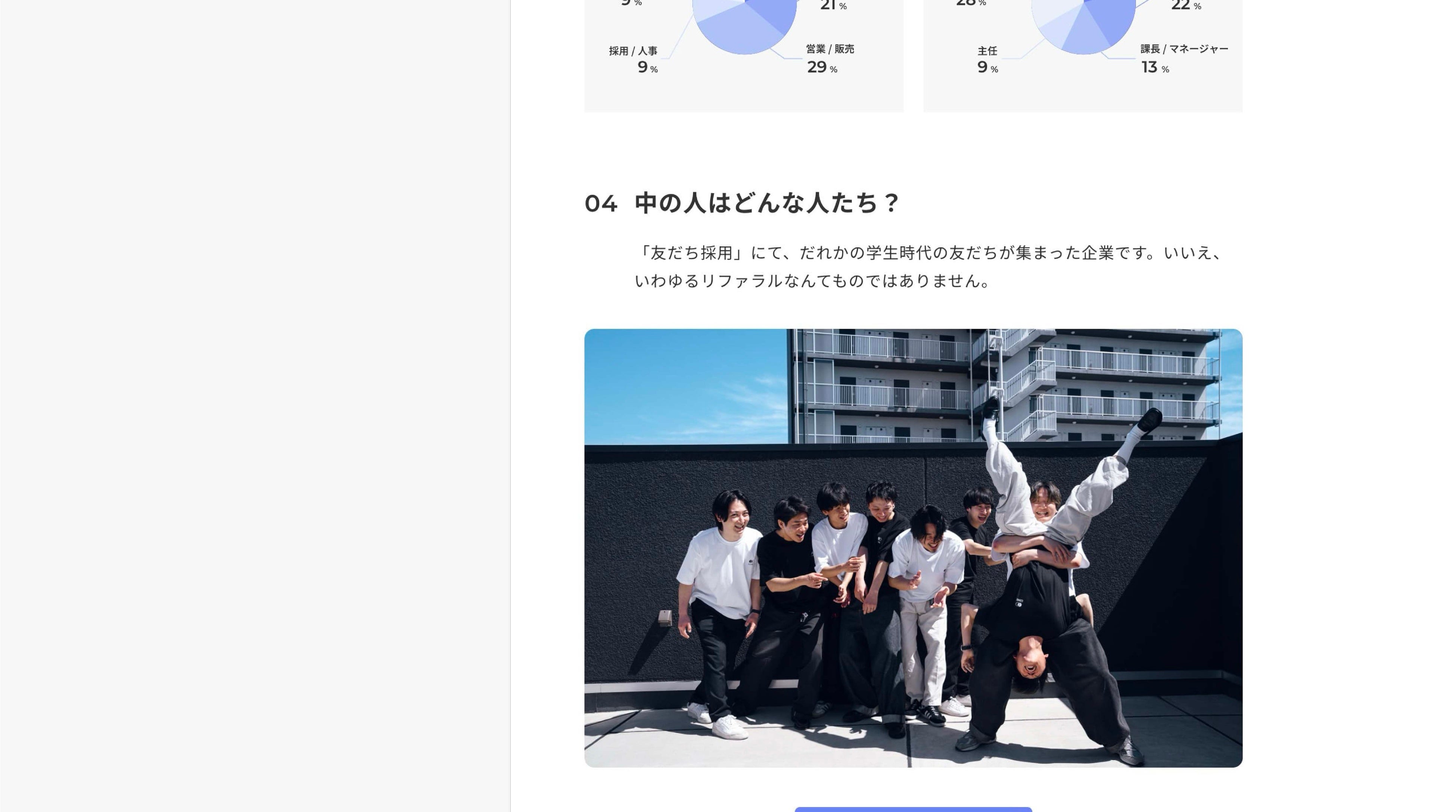 一見さんには優しいサイトですが、友だちには厳しいサイトとなっています。弊社Coneの正社員は必ず「メンバーのだれかの友だち」である必要があります。採用基準が心の通った友だちという「友だち採用」。