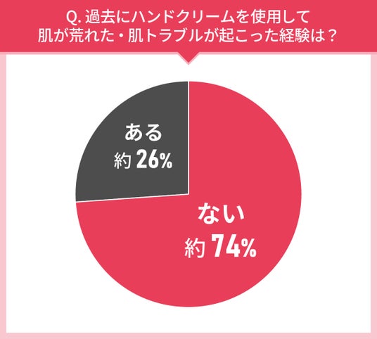 約74%の人が肌トラブルの経験はないと回答している一方で、約26%の人があると回答しました。少なからず合わないハンドクリームを使うと肌トラブルが起こる場合があるということですね。