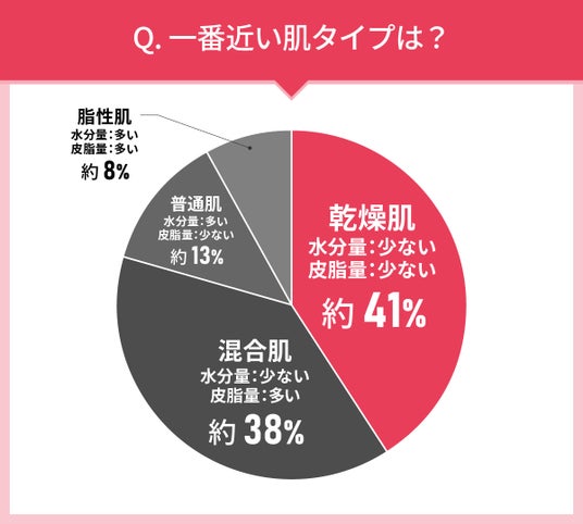 - 乾燥肌(水分量少ない/皮脂量少ない):約41%