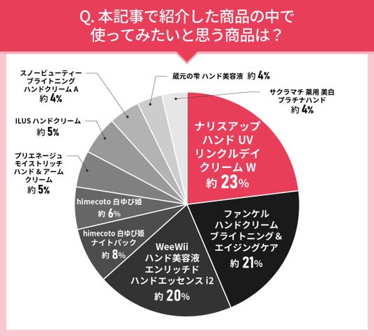 老け手対策におすすめのハンドクリーム10商品をプロが厳選|レビュー&写真付き』にある商品の中でどの商品を使ってみたいかを聞いてみました。ここでは『使ってみたいハンドクリームのTOP5』を紹介します。