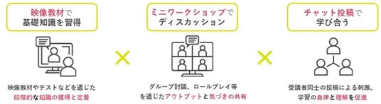 その後、映像講座2.にてエンゲージメントを向上させるためのヒントを得て、本プログラム参加者限定の掲示板にてアイデア出し等を通じてピア・ラーニングを行います。