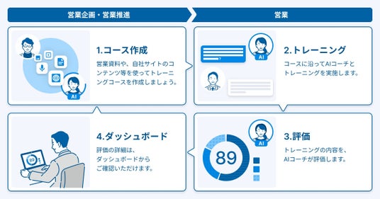 AIが営業資料にもとづいて評価・フィードバックし営業の学習・実践をサポート