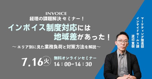 本セミナーでは、全国の提供事業者のインボイス制度の対応負荷における地域差を解説させて頂き、具体的にどのエリアが対応の負荷が大きいのかなど、皆様が受領されている請求書の現状認識が行いやすい様、紹介させて頂きます。 そして、最後にインボイス制度対応をストレスなくスムーズに処理するための方法として弊社サービスの活用事例などもご案内させて頂ければと思います。