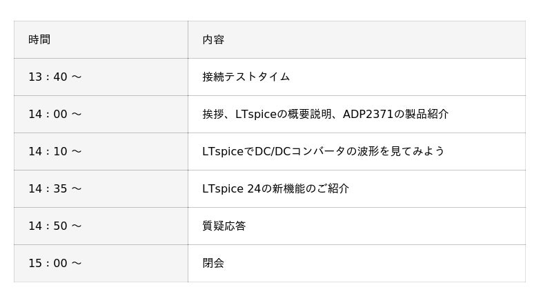 LTspiceをはじめて使用する方や新機能を知りたい方、電源回路のシミュレーションを検討している方を対象にLTspiceの基本操作と電源回路のシミュレーション方法の習得を目指します。