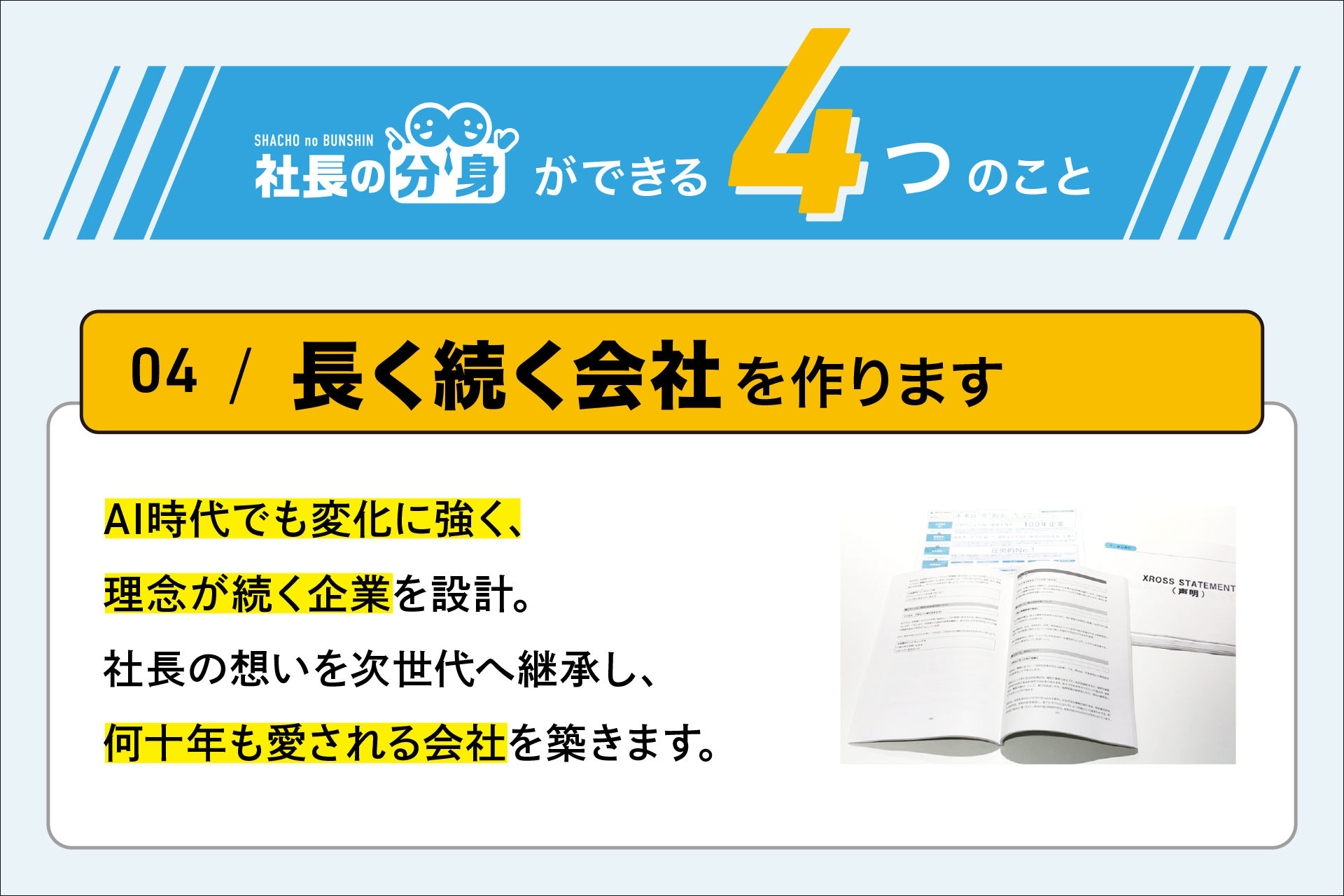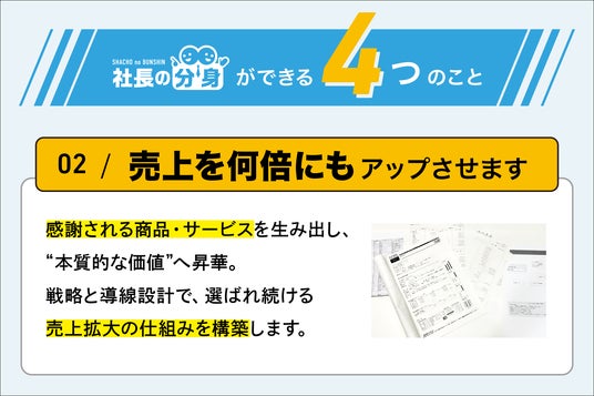 ■サービス特長1.社長の判断基準を言語化経営者の経験や感覚に依存している意思決定を整理し、組織で共有可能な判断軸へ変換します。