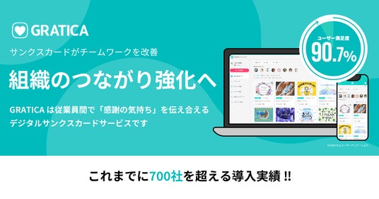 ▶プラセス導入事例社員が元気な会社は「強い」。PLASESS(プラセス)がつくる製造業の新しい魅力導入背景・成果・これからの視点をまとめた事例紹介(製品サイト)インタビューを通じた読みもの形式の記事(OKWAVE media)■『GRATICA』オンライン上のサンクスカードを用いて企業内の従業員同士がお互いに感謝の気持ちを伝え合うことで、社内コミュニケーションの活性化や従業員エンゲージメントの向上など、組織力強化に寄与するクラウドサービスです。