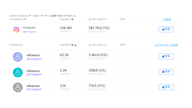 インフルエンサーの類似アカウント発見機能がアップデート