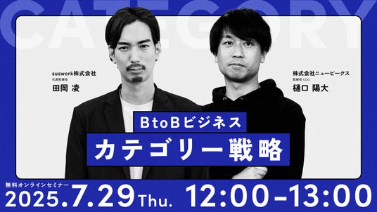 『急成長企業だけが実践する カテゴリー戦略』著者・suswork田岡氏と、イベントマーケティングの側面から数多くのBtoB企業を支援するニューピークス樋口による、60分間の対談ウェビナー